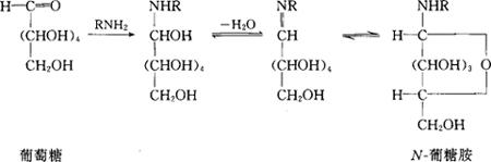 2.Amadori和Heyns中间产物 N-葡萄糖胺经分子重排形成Amadori中间产物 1-氨基-1-脱氧-2-酮糖。N果糖胺经分子重排形成Heyns中间产物-2-氨基-2-脱氧-1-醛糖。
