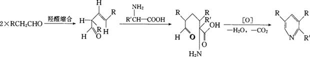 (5)吡啶类化合物。棕色化反应过程中吡啶类化合物的形成路径主要是羟醛缩合产物与氨或氨基酸的环化缩合。