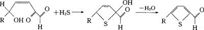 (8)噻吩类化合物。噻吩类化合物是由α-二羰基化合物与硫化氢作用生成的。