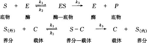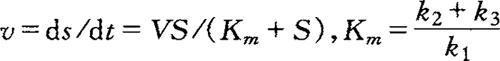 应用米凯利斯—门藤(Michaelis—Menten)方程式,可求出酶促反应的速率(v),最大速率(V)和米氏常数(Km)。