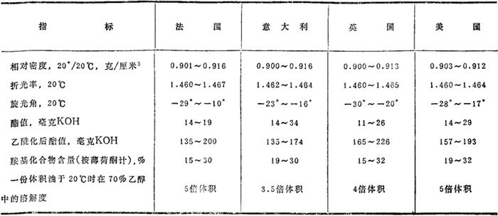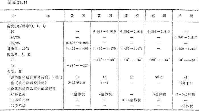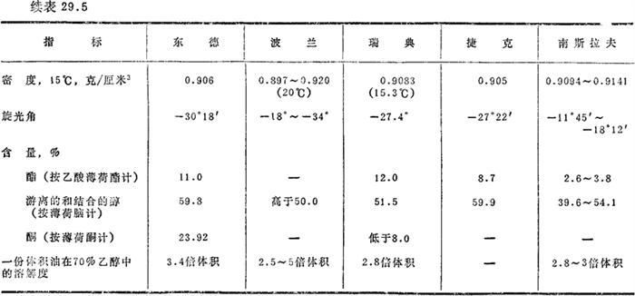 表29.9 根据法国标准(FDT75-210-65)各国椒样薄荷油的质量指标