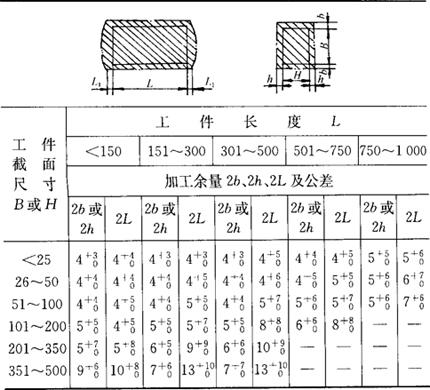 | 释义 | 模具用锻件的制造 1.模具用锻件的锻造目的 使材料内部组织细密,碳化物和锻造流线的分布合理,从而达到改善热处理性能和提高使用寿命的效果。 2.锻件的技术条件 ①矩形锻件加工余量见表7.1-4。 表7.1-4 矩形锻件加工余量 (mm)
