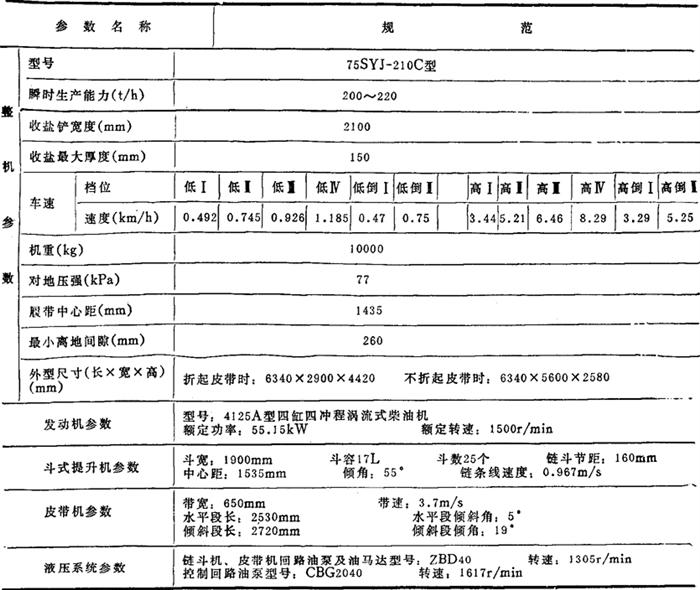 表2-8-1975SYJ-210C型收盐机性能表