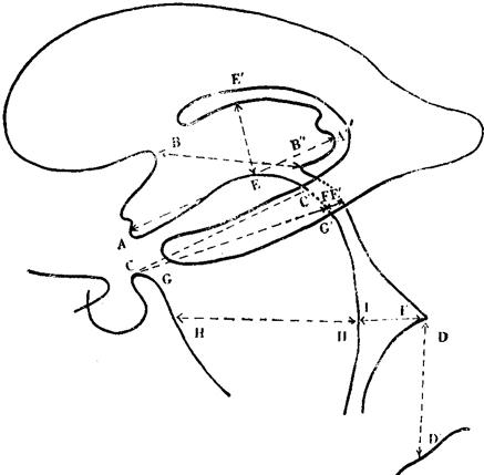 图139 脑室各距的测量 AA′ 第三脑室前后径 4.4厘米 BB′ 侧室孔至中脑导水管 3.0厘米 CC′ 中脑导水管口至后床突 3.5厘米 DD′ 四脑室至颅底 3.4厘米 EE′ 第三脑室高 1.5厘米 FF′ 中脑导水管径 0.2厘米 GG′ 导水管中段至后床突 3.9厘米 HH′ 四脑室至鞍背 3.4厘米 Ⅱ′ 四脑室顶至底 1.6厘米 五、注意事项 (一)术后取头低(15~30度)脚高位,6小时后换为平卧位。 (二)颅压增高者,术后勿放脑脊液。 (三)造影后,确需手术者,宜极早进行。 (四)以观察第四脑室为主时,首次注气7~8毫升,可稍快注入,约2秒后拍摄包括第二颈椎的头侧位片。 六、反应与处理 (一)注气过程中,若有头痛、头胀、出汗、面色苍白或恶心呕吐时,应嘱病人坐稳,头部勿动,同时减慢注气速度;如有脉搏加快、呼吸不规则、血压下降、出汗过多等严重反应时,应停止造影,并采取相应的措施。 (二)术后头痛、呕吐重者,应给镇静剂或补液,嘱病人平卧休息,尽量减少头部活动。 (三)少数病人可有短时体温升高,应严密观察。 七、脑室充气不良或未显影的原因: (一)头位不正确,过倾或过仰。 (二)由于注气过快,气体先进入蛛网膜下腔。 (三)穿刺针头斜面过长或器械接触不牢,以致气体溢漏或注入硬膜下腔。 (四)脑室系统有梗阻,如中孔粘连,第四脑室占位病变等,造成显影不良(图140)。