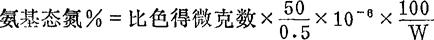 式中:比色得微克数——为待测液吸光度在工作曲线上所查得的相应氨基态氮的微克数; W——样重(g)。 |