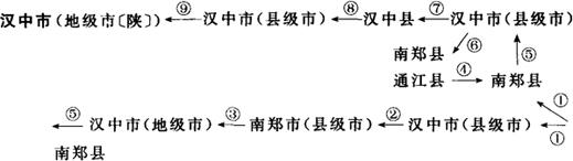 ①1912年称南郑县;1949年12月6日析南郑县城区和郊区置汉中市(县级市),市、县分治。②1950年汉中市改称南郑市(县级市)。③1953年南郑市更名为汉中市(地级市)。④1954年四川省通江县的碑坝区划归南郑县。⑤1958年11月汉中市改为县级市;同时南郑县并入汉中市。⑥1961年析汉江以南地重置南郑县。⑦1964年撤销汉中市,改设汉中县。⑧1980年8月恢复汉中市(县级市)。⑨1996年2月21日撤销汉中地区、汉中市,设立地级汉中市。