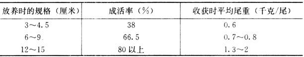 | 释义 | 池塘混养 池塘混养就是在家鱼成鱼养殖池或亲鱼专养池中适当套入少量的乌鳢鱼种。如在青鱼、草鱼、鲢、鳙、鲤、鲫、鳊、鲮、罗非鱼的混养或单养池中套入少量的乌鳢鱼种。这一种养殖模式打破了养殖的传统观念,养殖史一直认为乌鳢鱼是凶猛鱼类——“鱼老虎”,是家鱼养殖的敌害,是清塘的对象。经过实践证明,合理套养,不仅无害,反而增益明显,是淡水养殖发掘水体生产潜力,提高产量,增加经济效益的好办法,并增加了优质商品鱼,具有广泛的推广和应用价值。浙江省1991年,全省推广成鱼塘搭养乌鳢3333多公顷,每667米2年终增加乌鳢成鱼7~10千克。到1997年,全省鱼塘搭养乌鳢发展到6666多公顷,667米2产乌鳢成鱼7~12千克,每667米2净增效益150~250元。湖北省国营大同湖农场,在1991年推广家鱼成鱼塘套养乌鳢500公顷,产乌鳢商品鱼87.5吨,占该场渔业产量的7%,产值占渔业总产值的14%。1993年该场1333公顷成鱼塘全部套养了乌鳢。 池塘混养乌鳢的好处:首先是充分利用了水体中饵料资源,增加了优质鱼的产量,提高了单位面积的产值和效益。其二是清除了鱼池中野杂鱼后,减少了争食对象,保证了养殖鱼的摄食,提高了养殖鱼的产量,增加了产值和经济效益。 (一)主养家鱼成鱼池中套养乌鳢 1.家鱼池的要求 家鱼池的塘埂要高,防止乌鳢跳上塘埂;池塘底部要有适当的淤泥,因乌鳢有潜伏于淤泥的习性,但不能太厚,太厚会造成起捕率低,影响到第二年的家鱼养殖;排灌方便,保证池水肥而新,能适时调节水质和排水捕鱼。 2.乌鳢鱼种的放养 乌鳢鱼种的放养是否合适,对混养的效果起到决定因素,它包括乌鳢鱼种的规格大小、放养时间、放养密度等方面。必须把握好这些环节。 乌鳢的苗种可以是野生的天然鱼种,亦可以是野生乌鳢苗经过培育而成的鱼种,或人工繁殖的苗种。 (1)苗种的规格 家鱼成鱼池中搭养乌鳢时,乌鳢鱼种放养的规格大小是根据主养的家鱼鱼种的大小,选择合适的乌鳢鱼种。苗种的规格要严格把关。其主要原因是:乌鳢十分贪食、凶猛,它可以吞食与自身体长1/2的其他鱼种,甚至2/3体长其他鱼种。所以套养到家鱼池中的乌鳢鱼种必须比家鱼鱼种的规格要小,至少要小于1/2。例如放养家鱼种是17厘米以上,则乌鳢鱼种选择在8厘米左右为合适。否则,乌鳢鱼种偏大,会吞食、伤害家鱼种,影响家鱼的成活率和产量,降低了效益。 从全国各地乌鳢养殖的情况归纳得出:一般投放的乌鳢苗种在4~13厘米左右,其中以8~10厘米最多。实践证明套养的乌鳢鱼种在上述原则前提下,规格越大越好,成活率越高,产量越高。主要原因是规格越大,对环境的适应能力、争食能力、活动能力等都比较强,生长速度快。所以提倡放养规格最好在10~13厘米,精养池的家鱼鱼种规格在50克以上的新、老口。放养乌鳢苗种的规格与成活率的关系见表2-27。 表2-27 苗种放养规格与成活率的关系