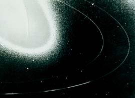 | 释义 | 海王星环 环绕海王星旋转的光环和尘埃盘。 1989年8月“旅行者-2”号探测器与海王星会合时发现。共有5个环带。至此,解开英国天文学家拉塞尔(William Lassell, 1799—1880)于1846年首次提出海王星光环的疑窦。在5个环中,外边是2个较亮的窄环,离海王星中心分别为11万千米和7万多千米;另2个在内侧则是较暗的弥漫环,其中1个宽2 000多千米;位于这4个环外侧的是宽约1万千米和厚2万多千米的尘埃盘;最内环离海王星中心4.2万千米。 5个环带都是完整的。其中最亮的是过去认为的“环弧”,嵌有许多亮点,很可能是小卫星或是冰体。环带的轨道尚未确定。