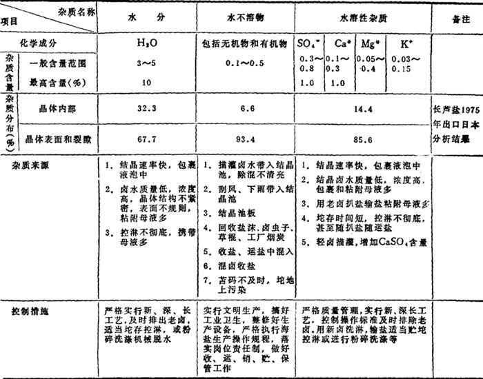 表2-5-15 中国海盐的杂质含量、分布、来漂及控制措施