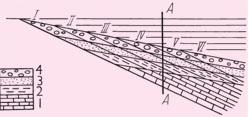 海退示意图1.石灰岩2.粘土岩3.砂岩4.砾岩