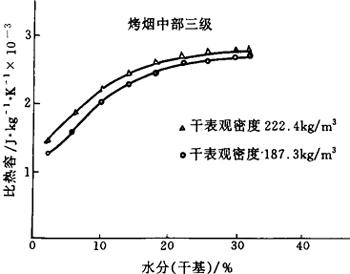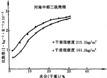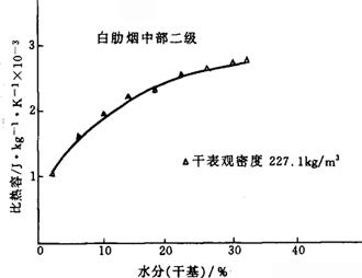 图4-6-21 河南中部三级烤烟比热容随含水率变化的曲线