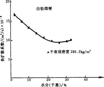 图4-6-29 白肋烟梗热扩散率与含水率的关系曲线