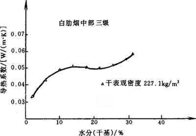 图4-6-31 香料烟堆积热导率与含水率的关系