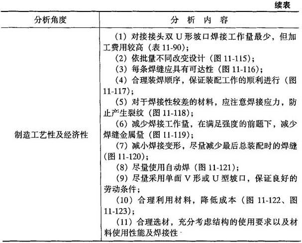 | 释义 | 焊接结构的合理性分析 焊接结构的合理性分析见表11-89. 表11-89 焊接结构的合理性分析