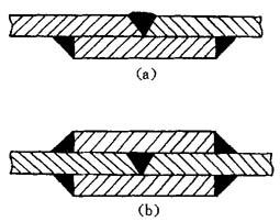 图11-121 平板拼接形式 (a)有利;(b)不利