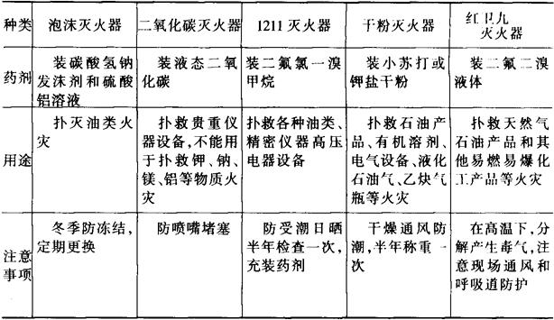 表15-22 灭火器性能及使用方法
