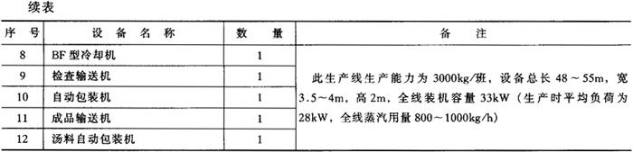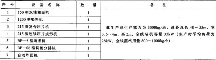 表5-2-6 班产3000kg方便面主要设备表