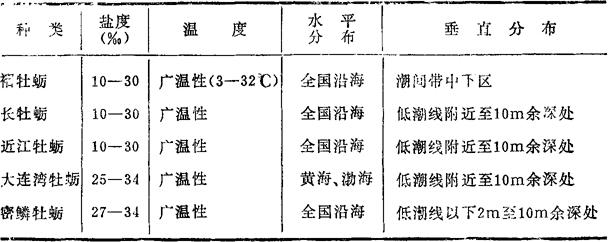 二、生态习性 1.牡蛎的生态分布 见表12-1。 表12-1 牡蛎的分布及其对温度和盐度的适应范围