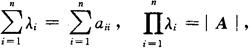 是一个λ的n次的多项式,称为A的特征多项式,方程|λE-A|=0,称为A的特征方程. 特征值、特征向量的性质 (1)A是n阶矩阵,λ是A的特征值,ξ是A的属于λ的特征向量的充分必要条件是λ为A的特征方程|λE-A|=0的根,ξ是齐次方程组(λE-A)x=0的非零解. (2)若ξ1,ξ2是A的属于λ的特征向量,则k1ξ1+k2ξ2(其中k1,k2是任意常数,但k1ξ1+k2ξ2≠0)也是A的属于λ的特征向量. (3)设n阶矩阵A=(aij)n×n有n个特征值为λ1,λ2,…,λn.则