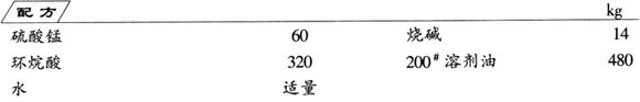 制法 将一定量的硫酸锰加水溶解,配成15%~20%的溶液加入到反应釜中。再将定量的烧碱兑水配成5%~10%的碱液,在搅拌条件下加入反应釜中与硫酸锰进行复分解反应。把一定量的环烷酸加入反应釜内进行中和反应,反应温度保持在90~100℃之间。反应1h后取样观察金属皂。当金属皂透明、下层水残余硫酸锰含量小于1%、颜色清澈、pH值为6~7时,反应完毕。最后趁热加入200#溶剂油稀释。静置分层滤去下层水,用80~90℃热水洗涤4~6次,再静置分层滤去下层水(在真空状态下脱水),即得产品。测定金属含量,送库储存。 |