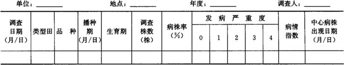 1.2 大田普查 在枯萎病发生后,进行大面积普查。普查时选用代表性大田或保护地20~25个。每块田采取对角线5点取样,每点前期取20株,中、后期取10株,大田调查一般进行3~5次。将调查结果记入表6-54。 表6-54 瓜类枯萎病大田普查调查表