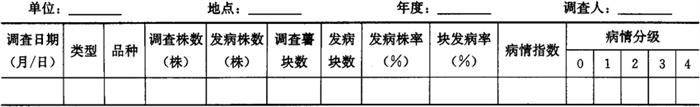 2.2 收获期病情普查 在甘薯收获时,调查当地主栽品种,5点取样,每点20株。记载病株数、病薯块数及薯块发病程度。调查结果记入表4-155。 表4-155 收获期甘薯瘟病病情调查表