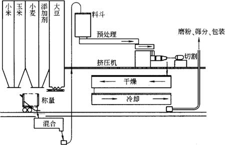 图2-7-3 速溶粉末类食品挤压加工工艺示意图 |