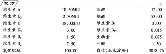 按配比将各种维生素与载体掺合搅拌均匀,即为产品。