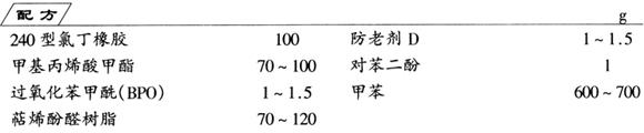 制法 将氯丁橡胶于甲苯中溶解,然后分批滴加溶有过氧化苯甲酰的甲基丙烯酸甲酯,搅拌、加热至90℃,黏度适中时加阻聚剂(对苯二酚),保温3~5h后降温至室温。在冷却过程中,可适当添加增黏树脂(萜烯酚醛树脂)、防老剂。最后为调节黏度,可补加少量甲苯。所得的氯丁胶接枝胶液为棕黄色半透明黏稠液体,其黏度为1~1.5Pa·s,固体含量为15%~25%。 |