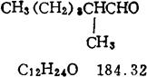 又称C-12,MNA,以甲基壬酮与一氯醋酸乙酯以醇淦为缩合剂,按达成斯(Darzens)反应缩合而制得。 性质 无色至淡黄色油液,具有柑桔脂肪香气,并带有龙涎香气息,稀释后呈花香;相对密度(20°/20℃)0.964~0.970,折光指数(20℃)1.513~1.515,含醛量≥92%,酸值≤10;溶解度:1份溶于4份80%乙醇中;沸点232℃或114℃/10mmHg,闪点87℃。 用途 用于调配日化香精。 国内生产厂 上海香精香料公司松江分厂、苏州香料厂。 |
