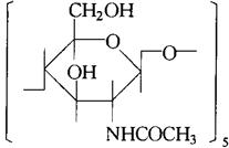 | 释义 | 甲壳素 别名 甲壳质、几丁质 编码 GB 20.018 化学结构 2-乙酰胺-2-脱氧葡萄糖单体通过β-1,4糖苷键连结起来的直链多糖。
