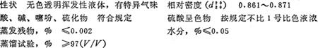 性能 无色液体,有类似苯的气味,可燃。相对密度(d