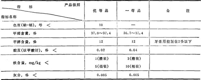 | 释义 | 甲醛溶液 别名 福尔马林、甲醛水 分子式 HCHO 分子量30.03 性能 约含37%甲醛的水溶液(重量计),一般含8~12%的甲醇,以防止其聚合。无色液体,有刺激性气味,对人的眼鼻粘膜有刺激作用。久贮易混浊,在低温时则形成三聚甲醛沉淀。本品为强还原剂,在微量碱性时还原性更强,在空气中能缓慢氧化成甲酸,能与水、醇、丙酮任意混合。pH2.8~4.0,相对密度0.82,沸点101℃。 质量规格 GB9009-86