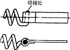 (1)引出棒(或带)与电热元件的焊接:为了降低电热元件引出炉外一端的温度,以利于与电源连接,通常采用较大截面积的(一般应在三倍以上)引出棒或引出带,材料可以采用铁-铬-铝、镍-铬或镍-铬-铁、1Cr18Ni9不锈钢等。其常用焊接方法如图10-8~图10-13。