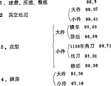 | 字词 | 电瓷各工序加工损失率及回浆率(回坯率)实例(1985年收集) |