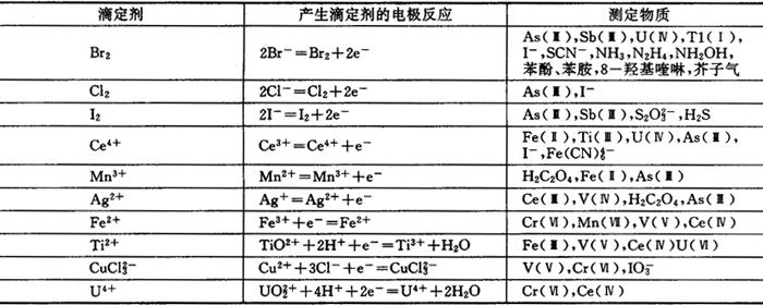 表12.9-9 应用氧化还原反应的库仑滴定法