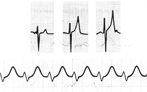 图142 地高辛效应的心电图表现 洋地黄中毒时,除心电图改变(图143)外,还可出现: