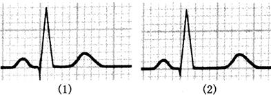 图139 血钙浓度与心电图变化的关系 (1)血钙正常;(2)血钙浓度降低