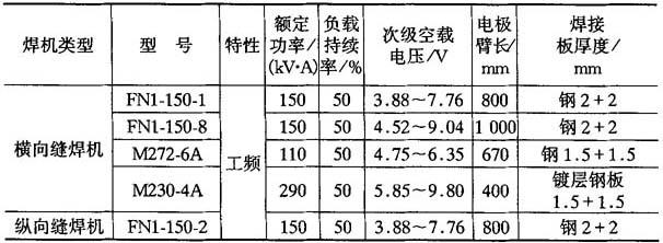 表9-30 典型缝焊机主要技术参数