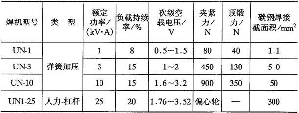 表9-32 典型电阻对焊机主要技术参数