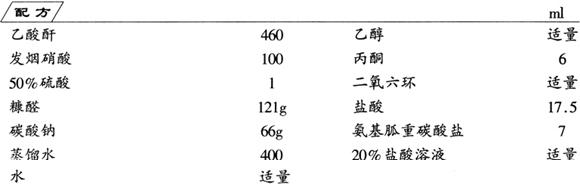 制法 (1)5-硝基糠醛二乙酸酯的合成 在三颈烧瓶中加入乙酸酐,冷却至7℃,搅拌下滴加由100ml发烟硝酸和1ml硫酸配成的混合酸。在0℃时滴加糠醛,滴加完毕,在5℃下搅拌1h。加入预热到60℃的碱液(由66g碳酸钠和400ml蒸馏水配成)。此时反应温度升到25~30℃,搅拌30min后升温至60℃再搅拌2h。反应液pH值为3.5~3.7。降温至10℃,直至无固体析出为止。过滤,滤渣水洗、干燥,用乙醇重结晶,便得到产品230g,收率85%,熔点91~92℃。 (2)1,5-二-(5-硝基-2-糠基)-1,4-戊二烯-3酮的合成 在三颈烧瓶中加入5-硝基糠醛二乙酸酯48g,50%硫酸200ml,加热回流30min,降温至75℃,加入6g丙酮,搅拌1h,冷却、过滤。滤渣用二氧六环重结晶,得产品20g,收率72%,熔点196~197℃。 (3)硝呋烯腙盐酸盐的合成 取75ml水加17.5ml盐酸,充分混合,慢慢加入氨基胍重碳酸盐,边加边搅拌,待无气体放出时转入三颈烧瓶中,加15.2g步骤(2)反应所得的产品,回流搅拌4h,过滤,用20%盐酸溶液洗,再用乙醇洗、干燥,得产品15g,收率76%。 |