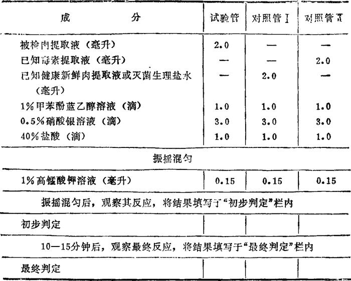 | 释义 | 病、死畜禽肉的检验 病死畜禽肉的鉴定是集贸市场肉品卫生检验的最主要内容之一。检验时,尤其是当胴体与内脏不连同上市的情况下,必须特别注意发现濒死期急宰或病死宰杀的畜禽肉。检验要以感官检查为主,同时要配合实验室检验,如此才能作出正确判定。 (一)感官检查 1.放血部位的组织状态。注意观察宰杀切口切面的状态及其周围组织的血液浸润程度。 健康畜禽肉:宰杀口外翻,切面粗糙不平,其周围组织血液浸染区很大,深达0.5-1厘米。 急宰畜禽肉:宰杀口不外翻,切面比较平滑,其周围组织稍有血液浸染现象。 病死和横死畜禽肉:宰杀口不外翻,切面平滑,血液浸润程度与胴体的其他部位相同。 2.胴体放血程度。观察放血程度应以肌肉组织的色泽、大小血管充盈血液的状况和肌肉新鲜切面状态为依据,如带有内脏,还要观察其色泽和肠系膜血管的充盈状况。观察时应在自然光线下进行。必要时,可做滤纸条浸润试验,即在肌肉上划一新鲜切口,插入一宽0.5-1厘米滤纸条,经数分钟,观察滤纸条被浸润程度(此法不适于冻肉和解冻肉)。 健康畜禽肉:放血良好。肉呈红色或深红色,脂肪呈白色或黄色,肌肉和血管紧缩,其断面不流出小血珠,胸膜、腹膜下的小血管不显露,滤纸条插入部分轻微浸润。 急宰畜禽肉:放血不良。肉呈暗红色或黑红色,肌肉断面上可见一处或多处的暗红色血液浸润区,并流出血珠,脂肪染成淡红色,胸膜、腹膜下小血管显露。剥皮胴体的表面常有血珠渗出。滤纸条试验被浸湿并超出插入部分2-3毫米左右。 病死或横死(如打死、摔死等物理性致死)畜禽肉:严重放血不良。肉呈黑红色并带蓝紫色,血管中充满血液,胸、腹膜下血管怒张呈紫红色;肌肉断面上有多处黑红色区域,轻压时,流出血滴;滤纸条被血液浸湿,且超出插入部分5毫米以上。 3.血液坠积情况。血液坠积的发生是因死后血液状态改变及其再分配的结果。检查时,注意观察尸体和器官的低部尤其是躺卧一侧的皮下组织、胸腹膜、肺脏、肾脏、肠管等有无血液坠积。 濒死急宰或死后冷宰的畜禽尸体卧位侧的皮下组织、胸腹膜和成对器官(卧侧)或多或少地呈现紫绀-深红色树枝状沉积性充血,死后数小时的尸体,在其低部的皮下组织中,可见明显的血液浸润区,尸体的浸润部位不同于瘀斑,它没有清楚的界线,切开时,流出血样液。 4.胴体和内脏的病理变化。观察胴体的皮肤、皮下脂肪、肌肉组织、胸腹膜等处有无异常,并注意病变的大小、形态和色泽等。某些疾病常于上述部位具有某种启示性或特有变化。对脏器应仔细检视其有无异常及相关淋巴结变化。 5.淋巴结的变化。着重观察具有剖检意义淋巴结的大小、色泽及切面有无异常,并注意区别局限性和全身性变化(家禽不检验淋巴结)。 健康牲畜胴体和脏器的淋巴结,切面呈灰白色,无异常。 濒死期急宰和死后冷宰牲畜胴体和脏器的淋巴结,通常肿大,切面呈暗红色、紫玫瑰色或呈现与各种疾病特别是传染病性质相应的病理变化。 6.病死禽类胴体的感官特征。 (1)皮肤呈不同程度的紫红色、暗黑色和铁青色,皮肤干枯,毛孔突起,拔毛不净;翼下、腹下小血管瘀血;胴体一侧或腹下有大片的血液沉积;胴体消瘦。 (2)冠和肉髯呈紫红色或青紫色,有的全部呈紫黑色,以边缘部较严重。 (3)眼部污秽不洁,眼多全闭,眼球下陷。 (4)嗉囊(鸭、鹅为食管膨大部)发青紫、空虚瘪缩或有液体、气体。 (5)肛门松弛、污秽不洁。 (二)细菌涂片染色镜检 当疑为病、死畜禽肉时,应采取有病变的淋巴结和脏器以无菌手续涂片镜检。对猪,应采取颌下淋巴结或其他存留淋巴结;对牛、羊,采取颈线、腹股沟深淋巴结或其他存留淋巴结。实质脏器主要采自肝、肾、脾。 (三)理化检验 1.pH值测定。健康畜禽肉呈正常的成熟过程,肉的内环境呈酸性。病、死畜禽肉由于有病牲畜生前肌肉中糖元大量消耗,致使肌肉中蓄积的乳酸和磷酸量较少,则肉中pH值比健康畜肉高。 (1)测定方法:同“肉新鲜度检验”。 (2)判定标准: ①健康畜禽肉。宰后一小时,肉中pH值为6.2-6.3;宰后24小时,肉中pH值为5.6-6.0(或不高于6.2);宰后24小时以上的,一般为5.8-6.2;长期保藏肉,其pH值最高为6,4-6.5。 ②病畜禽肉。刚屠宰的,肉中pH值高于6.6;宰后24小时,pH值略有下降;急性发病屠宰的畜禽肉,可能与健康畜禽肉的pH值相同;有时呈良性病理过程的畜禽肉的pH值常显正常范围。 2.过氧化物酶反应。同“肉新鲜度检验”。 3.硫酸铜肉汤反应。由于病、死畜禽生前体内组织蛋白发生不同程度的分解所形成的初期分解产物蛋白胨、多肽等。在热的被检肉汤中,凝固的蛋白质,可通过滤过清除,而滤液中的蛋白胨、多肽等大多又以负电荷的阴离子形式存在。因此,在电解质(硫酸铜)的参与下,与电离后的金属离子(Cu++)作布朗运动时互相碰撞而螯合形成难溶于水的蛋白盐。 (1)试剂:5-10%硫酸铜溶液。 (2)操作方法: ①肉汤制备:称取剪碎肉样1份,置锥形瓶中,加水4份,搅匀后加塞,置沸水浴中10分钟后趁热过滤,冷却至室温备用。 ②取上述肉汤滤液2毫升置试管中,加5-10%硫酸铜溶液5滴,混匀,静置,观察反应。同时做空白对照试验。 (3)判定标准: ①健康畜禽新鲜肉:肉汤澄清透明,无絮状沉淀。 ②病、死畜禽肉:肉汤中出现絮状沉淀或呈胶冻状。 亦可用硫酸铜沉淀反应。此反应不用制备肉汤,方法简便,其检验结果与上述反