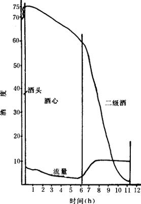 原白兰地馏出液的酒度与蒸馏时间的函数关系如图5-3-6所示。
