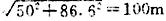 〔计算例〕 某吊装竖立抱杆高度50米,底边86.6米,求绳长度(c)。