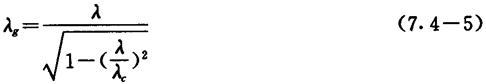 图7.4-2 TE10波的场结构 2.矩形波导的传播特性 1)波导波长λg 矩形波导内TE波和TM波的波导波长为