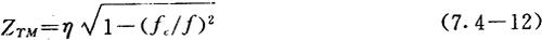 式中,η——TEM波的波阻抗;f——工作频率;fc——截止频率。对于横磁波(TM波),