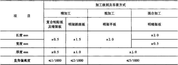 注:其他规格由供需双方协商确定。 3.技术要求 (1)外观质量 矿物棉装饰吸声板(以下简称吸声板)的正面不应有影响装饰效果的污迹、划痕、色彩不均、图案不完整等缺陷。产品不得有裂纹、碎片、翘曲、扭曲,不得有影响使用及装饰效果的缺角缺楞。 (2)尺寸允许偏差 吸声板的尺寸允许偏差应符合表9-24规定。 表9-24 矿物棉装饰吸声板的尺寸允许偏差