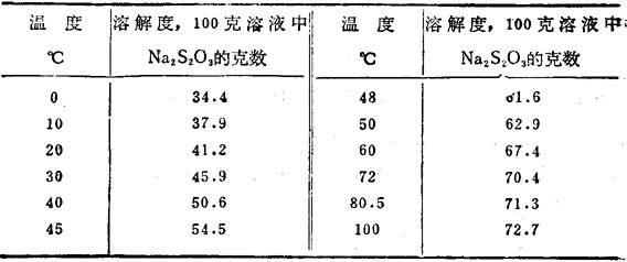硫代硫酸钠在水中的溶解度
