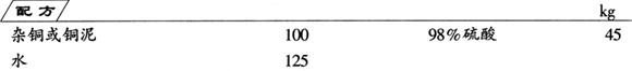 (2)酸化 取氧化铜60kg放入反应缸中,加入开水125kg,用木棒充分搅拌均匀,再加入硫酸45kg,使它自行反应(必要时通入蒸气加热),至溶液浓度到36°Bé为止。