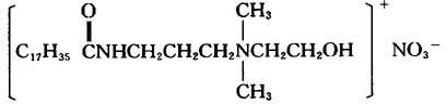 | 释义 | 硬脂酰胺丙基二甲基-β-羟乙基铵硝酸盐,抗静电剂SN 【结构式】: